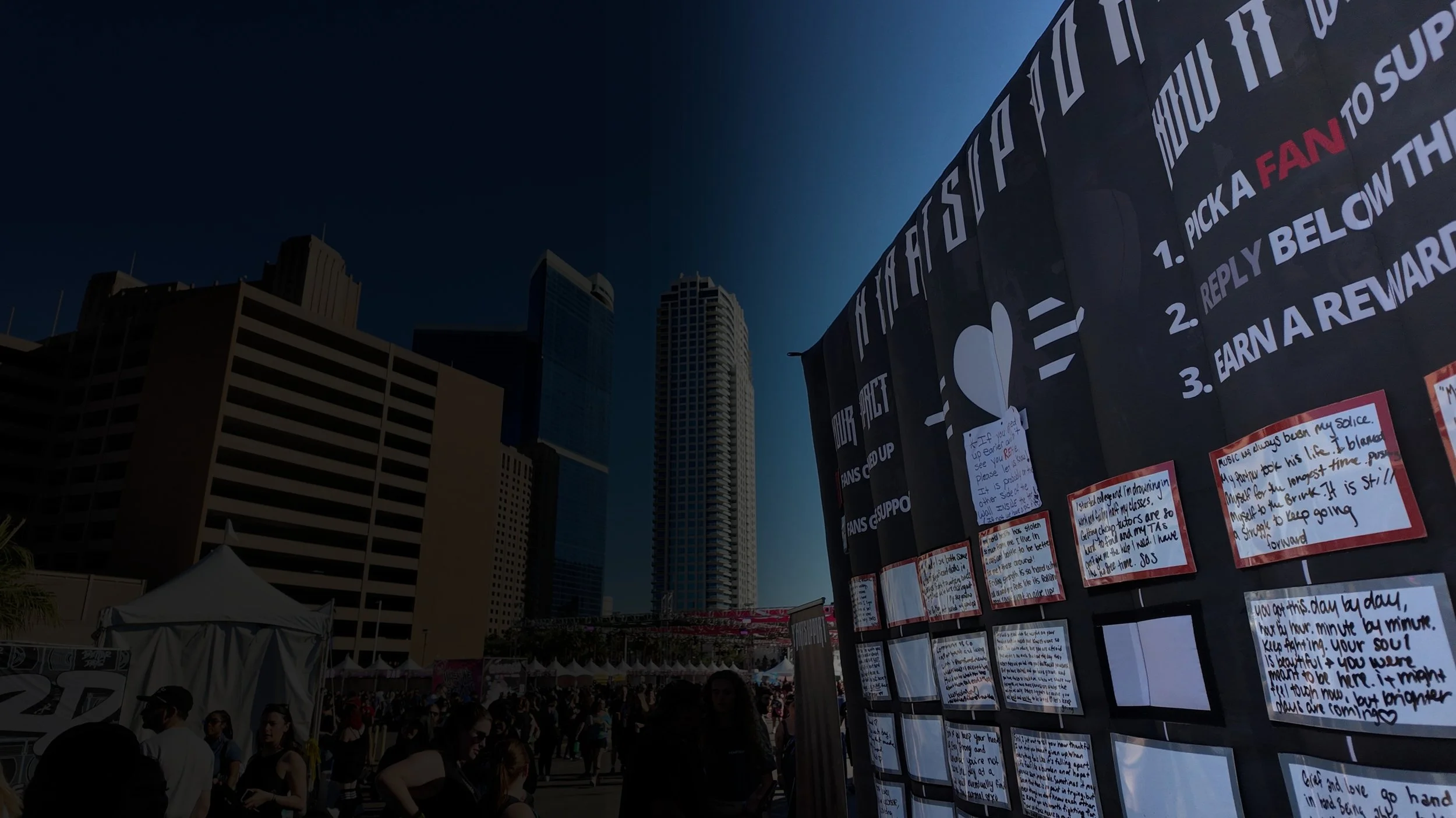 We engineered an inflatable wall with velcro-attached dry-erase tiles that allows fans to ask for and receive support in real time at shows. We deploy at festivals with our Support Wall: a place to share struggles and find community.