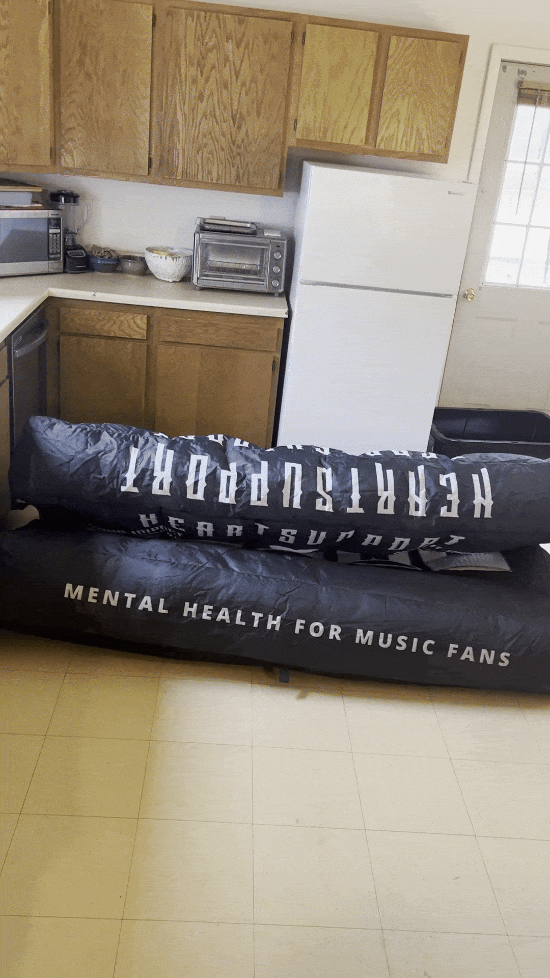 To make this new version, HeartSupport partnered with Brand Asset Partners. Together, we’ve created a ten-foot by ten-foot version for festivals and a seven-foot by seven-foot version. Both can be plugged in, inflated, then deflated and packed down into a single tub.