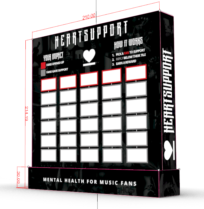 We get fans at your festival to open up about their struggles before doors. When they’ve received support, we bring them back to read the responses. We connect them to ongoing support and free therapy.